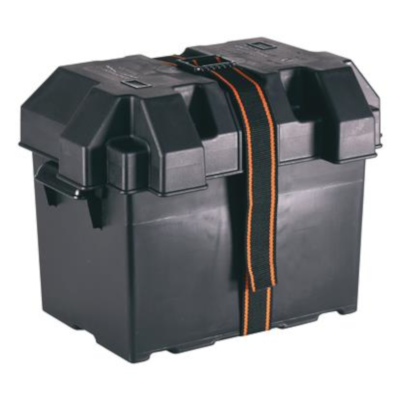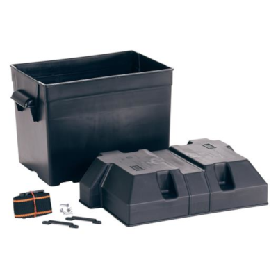 Comprend une sangle d’arrimage / des supports de fixation; Noir; Polypropylène; Avec support de batterie / couvercle de batterie / pinces et vis de pied de batterie